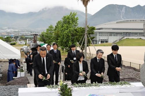 大火砕流28年 遺族ら献花 雲仙 普賢岳 写真 共同 日本経済新聞