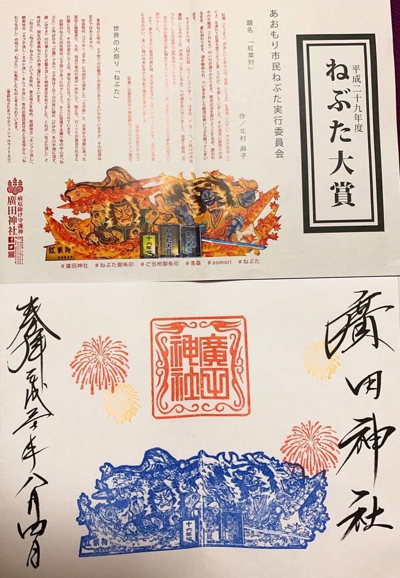 シンデルラ Twitter પર ねぶた祭り限定 御朱印頂きました 青森市 ねぶた祭り 限定御朱印 廣田神社