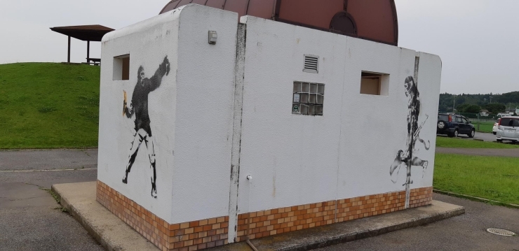 千葉県印西市山田の公衆トイレにバンクシー作品 市は消去の方針 Takaralog