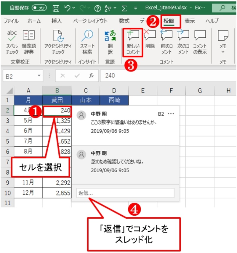 エクセル時短 使ってみた 新しい コメント 機能 スレッド形式でほかの人とやり取りできる できるネット