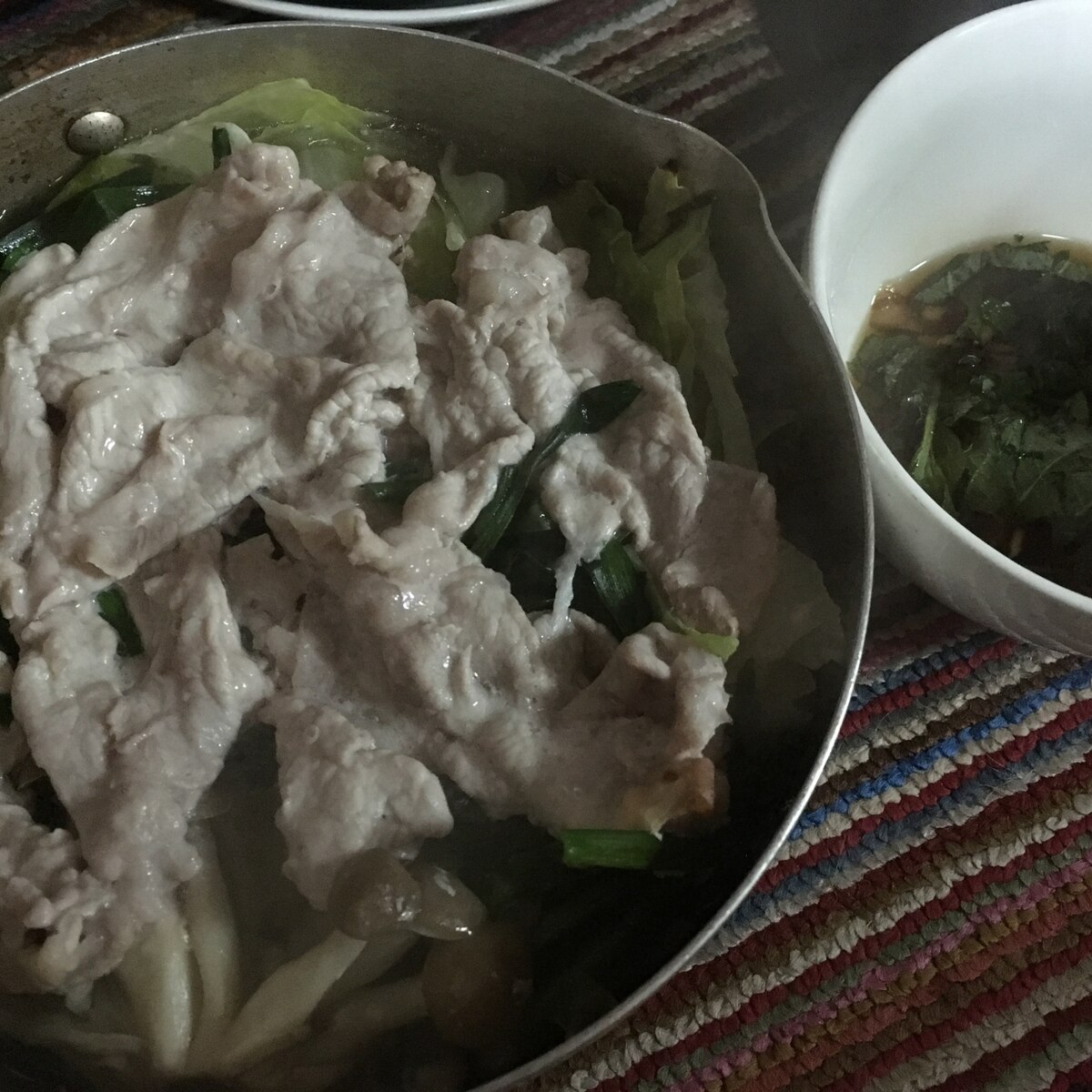 キャベツ鍋 キャベツとニラ 豚肉の鍋 やもめ食堂