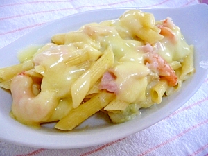 目玉乗っけ海老とベーコンのペンネグラタン レシピ 作り方 By Huhufumin クックパッド
