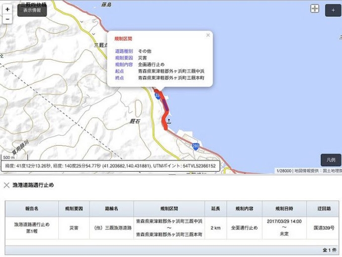 国道339号 通行止に関する今 現在 リアルタイム情報 ナウティス