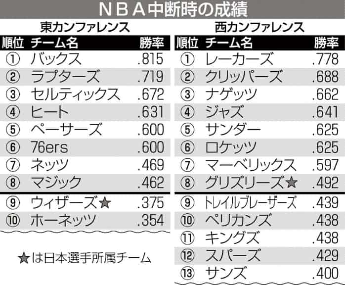 nbaがリーグ再開へ 八村 塁は1年目でプレーオフ進出なるか