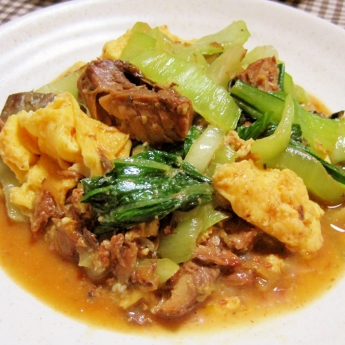 お手軽リメイク 青梗菜とさば缶のたまご炒め レシピ 作り方 By yamat 楽天レシピ