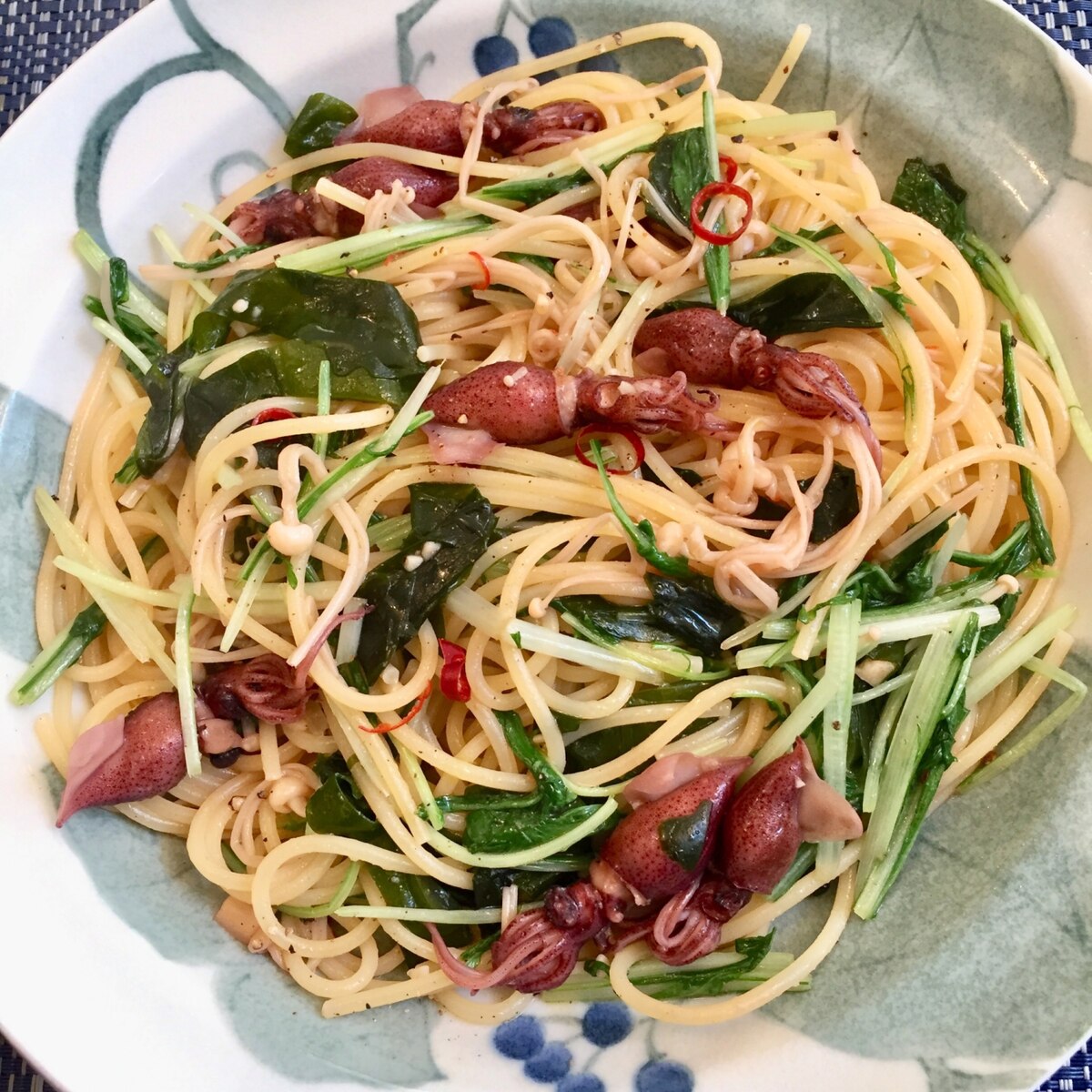 ホタルイカと水菜の和風ガーリックパスタ レシピ 作り方 By モーリーママ クックパッド
