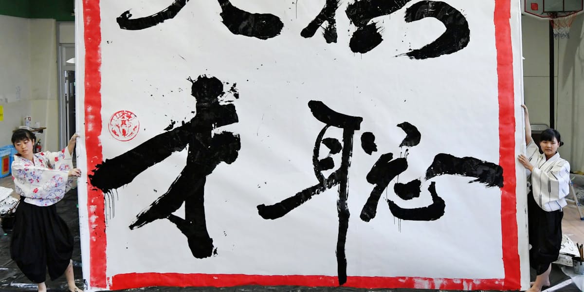 今年の漢字4文字は 国祭令和 大阪 上宮高の書道部員 揮ごうパフォーマンス披露 毎日新聞