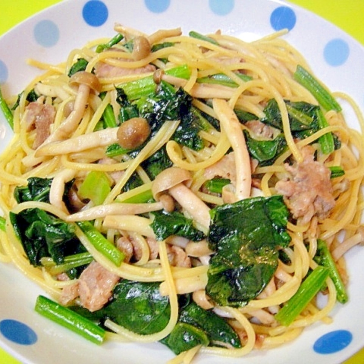 焼肉のタレで ほうれん草と豚肉しめじのパスタ レシピ 作り方 By Mint74 楽天レシピ