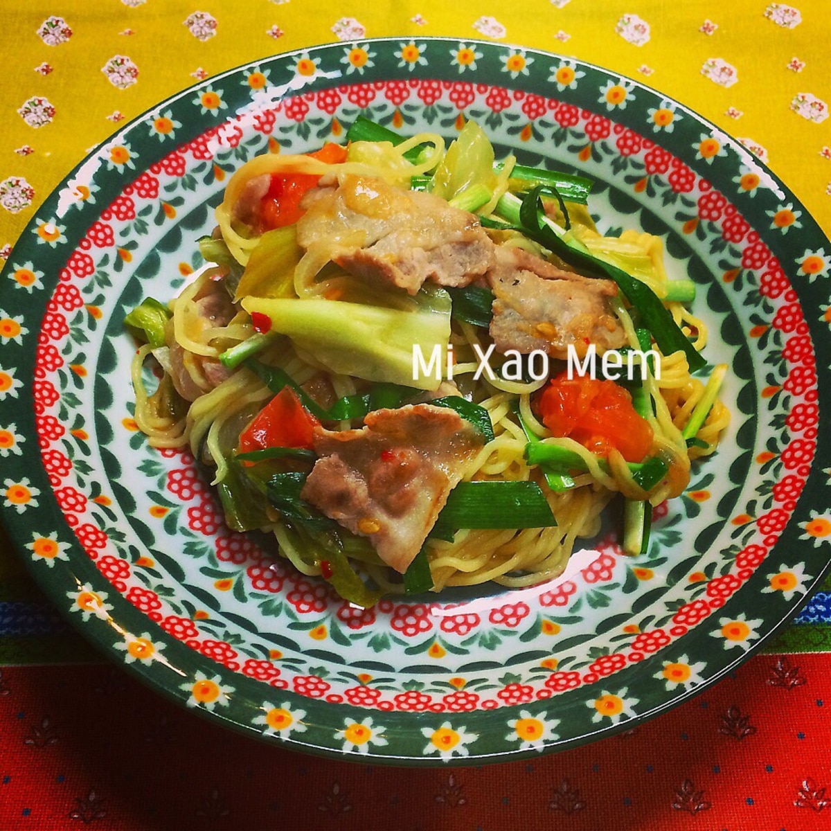 ミーサオ ~ 海鮮入り五目焼きそば. ベトナムでもポピュラーなインスタント麺を使ったベトナム焼きそば。 Popular Vietnamese fried noodles made with instant noodles.