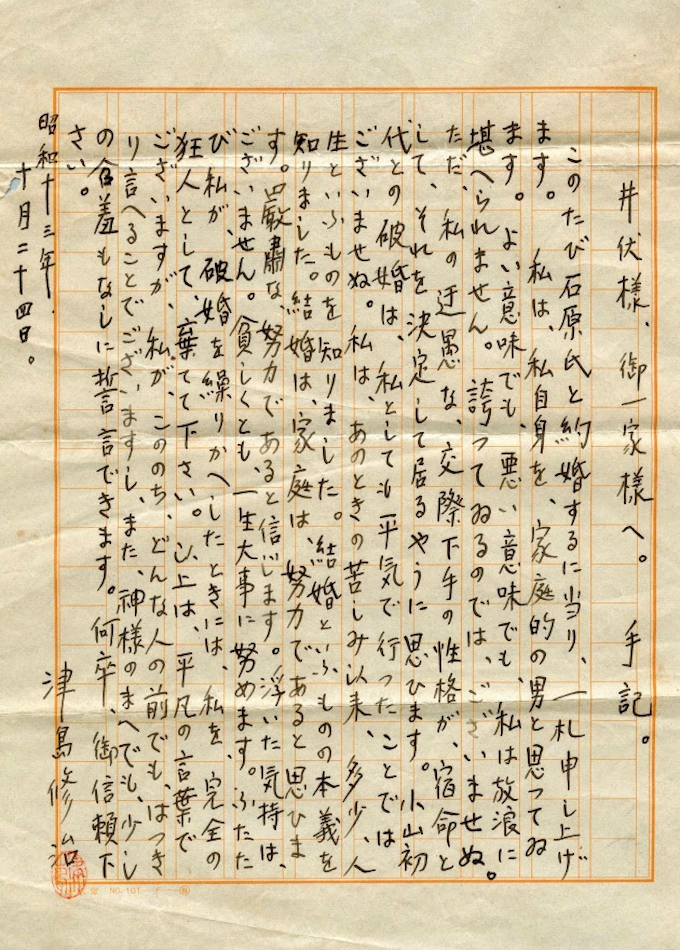 結婚は努力 太宰治 井伏鱒二夫妻に手紙12通 日本経済新聞