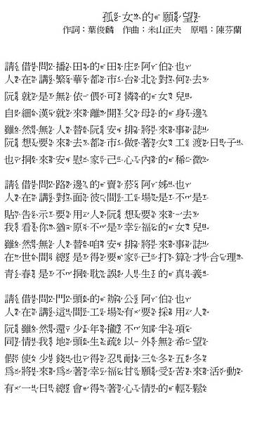 台語歌詞用字及注音 孤女的願望 何典恭的 望文知義 的台文部落格 痞客邦