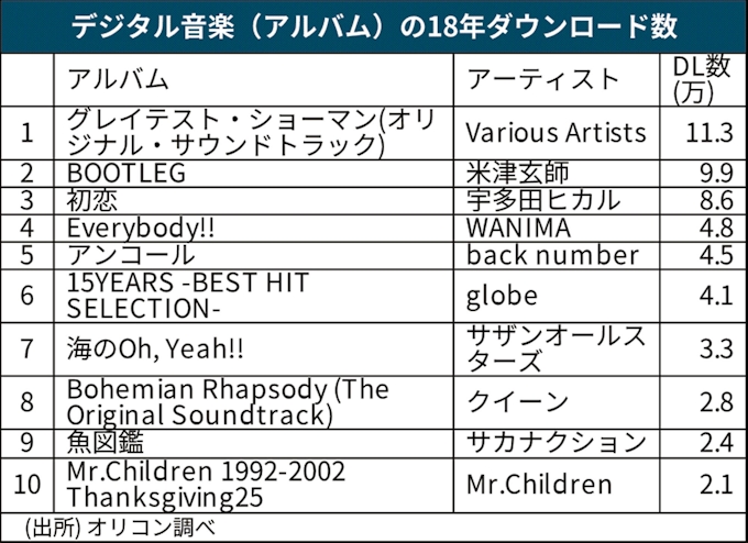 オリコン年間デジタルランキング 18 米津玄師がシングル首位 グレイテスト ショーマン がアルバム首位 Oricon News