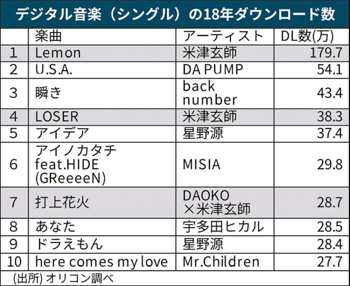 米津玄師 Lemon Dl首位 18年 オリコン調べ 日本経済新聞