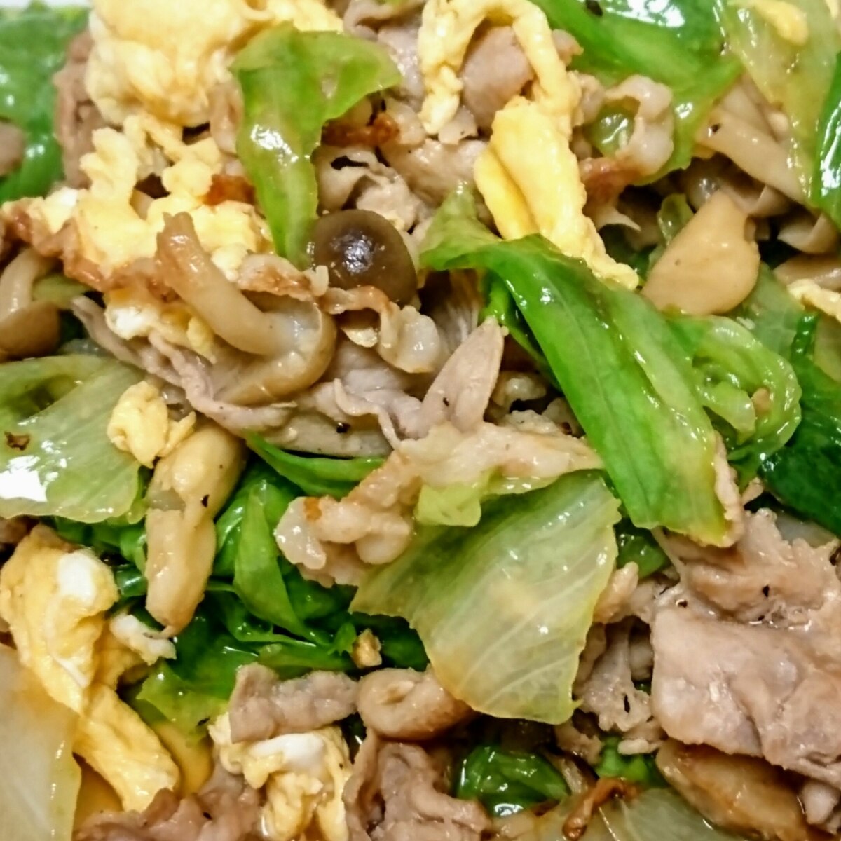 豚バラ肉とレタス椎茸シメジのオイスター炒め レシピ 作り方 By Piano 楽天レシピ