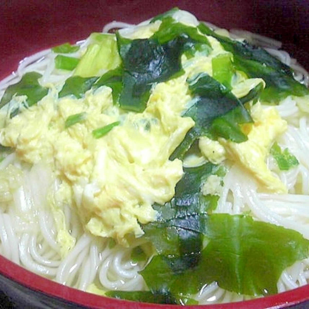ワカメ卵とじコンソメ味のにゅうめん レシピ 作り方 By デラみーやん 楽天レシピ