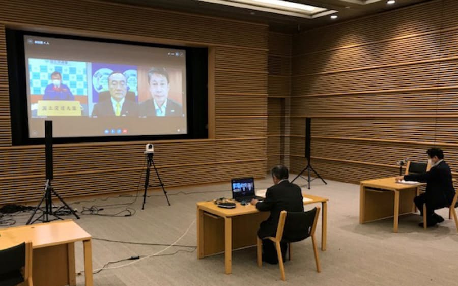 全国知事会とのテレビ会議であいさつする西村経済再生相 上段左 中央は全国知事会長の飯泉嘉門徳島県知事 30日夜 東京都千代田区 写真 西日本新聞ニュース