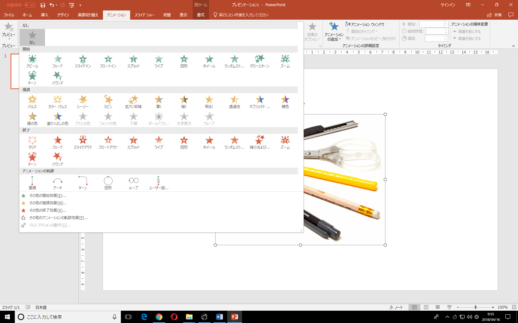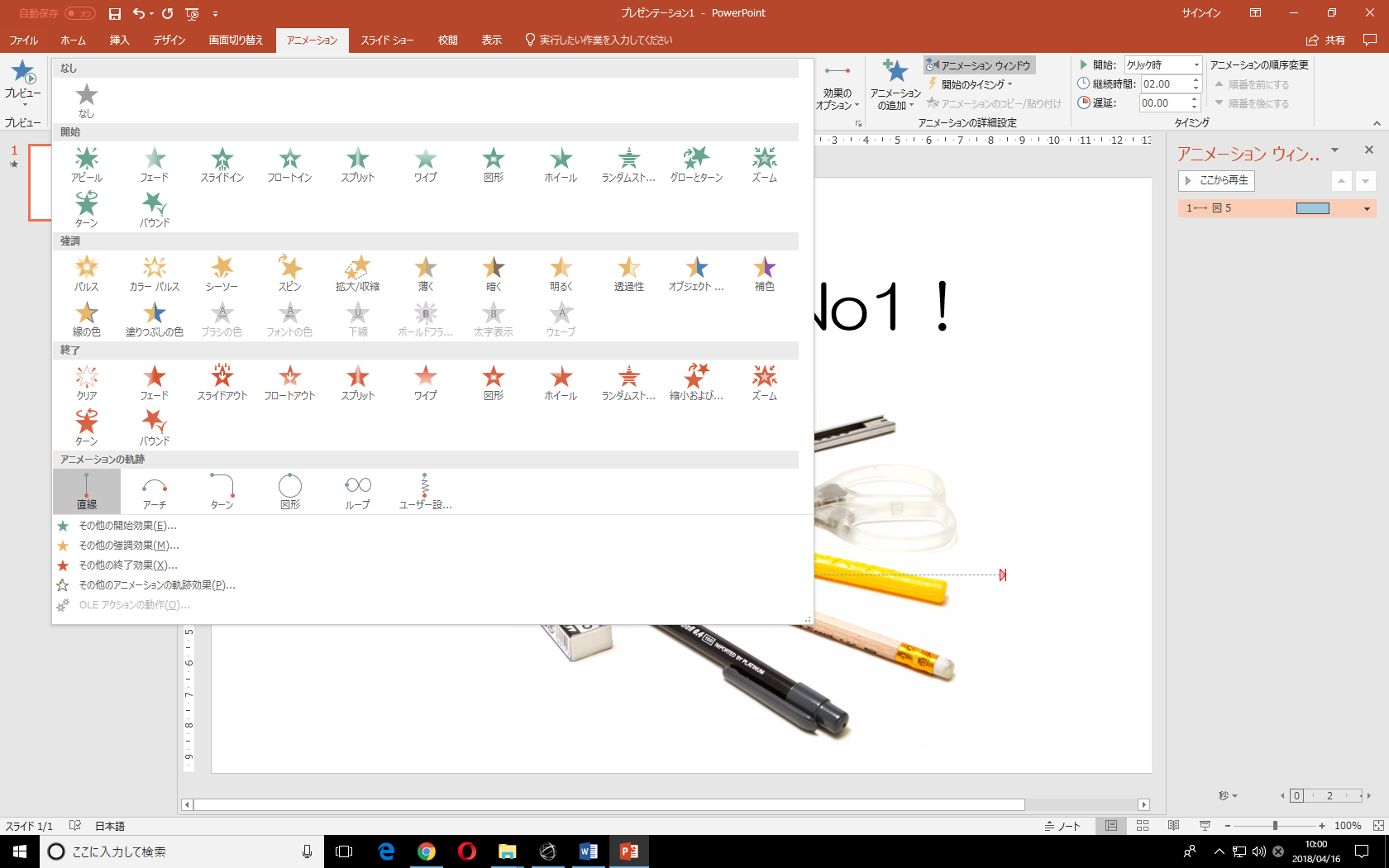 Powerpoint 16 アニメーションの軌跡を追加するには