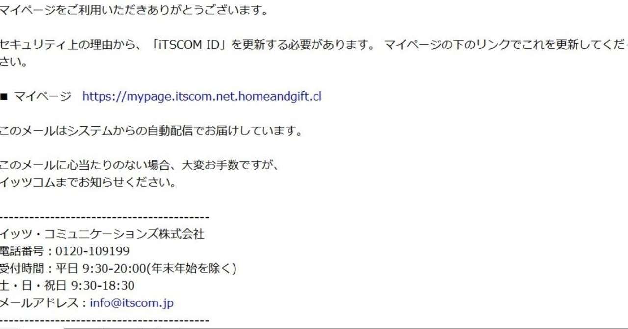 迷惑メールにご注意ください 東急沿線のケーブルテレビ Catv イッツコム