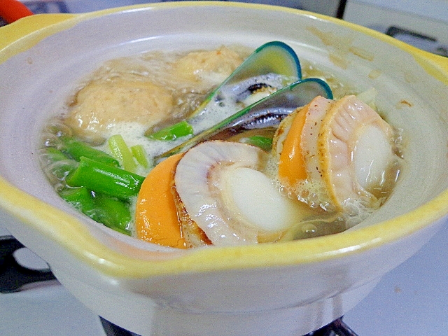 鶏団子と貝類のお一人様ランチ鍋 レシピ 作り方 By Sundisk 楽天レシピ