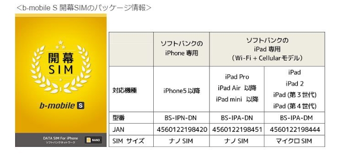日本通信 ソフトバンクのiphoneで使える格安sim B Mobile S 開幕sim を発売 アプリオ