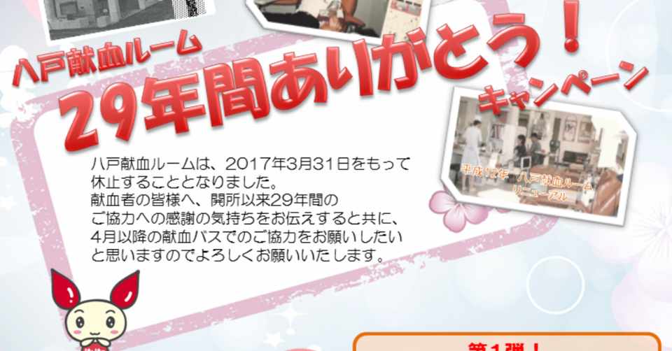 青森県赤十字血液センター 八戸献血ルームは 県内献血ルームの再編整備のため 平成29年3月31日をもって休止となり Facebook