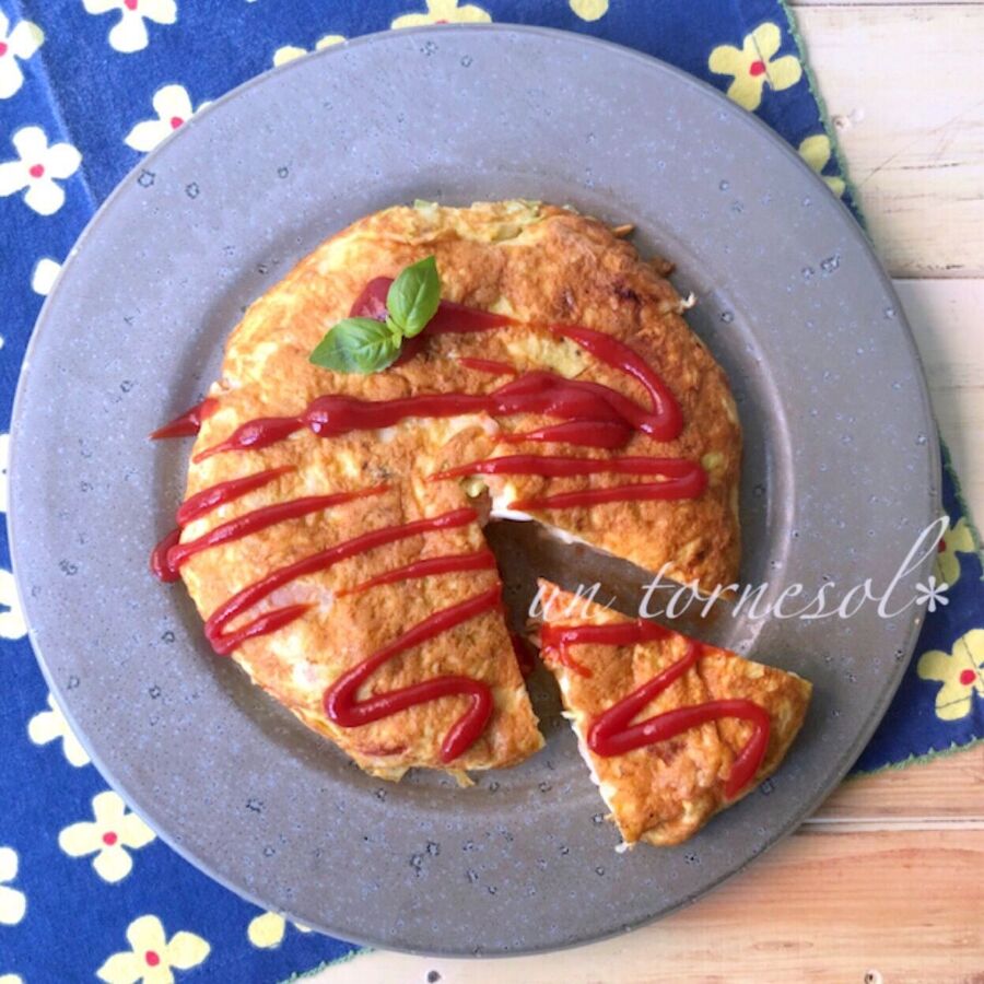 ベーコンの上にキャベツ その上に小エビのあみ その上にワンタンの皮 その上に玉子の目玉焼き Takeshi Nagaki Snapdish スナップディッシュ Id Qz84la