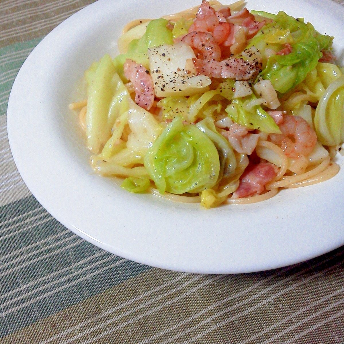 簡単 エビ イカ ベーコン キャベツ炒め レシピ 作り方 By りょされ クックパッド