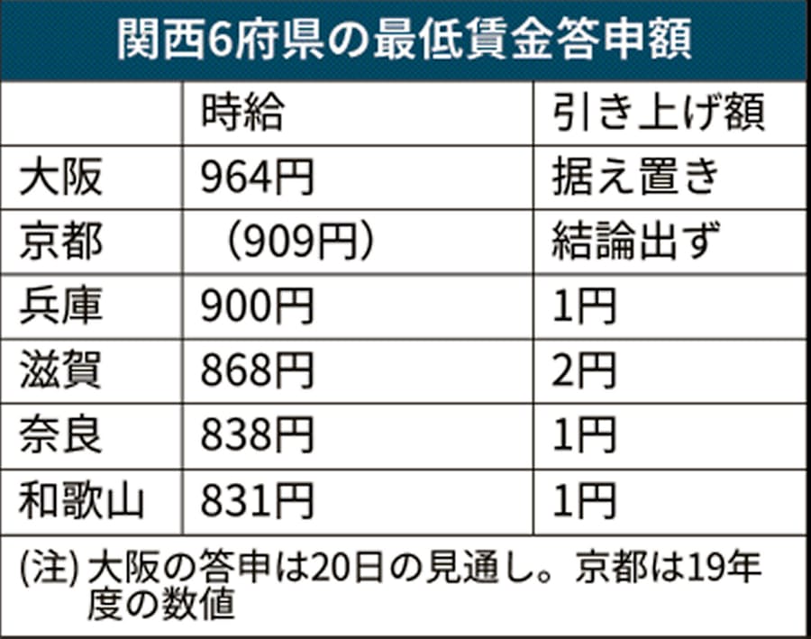 新型コロナ 関西の最低賃金上げ 議論が紛糾 京都は結論出ず 日本経済新聞