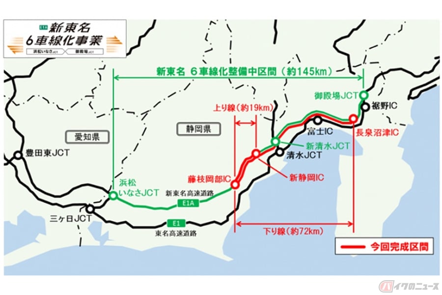 新東名6車線化 7月に一部完成 静岡県内で上下合わせ約90km 残りも年度内に 乗りものニュース