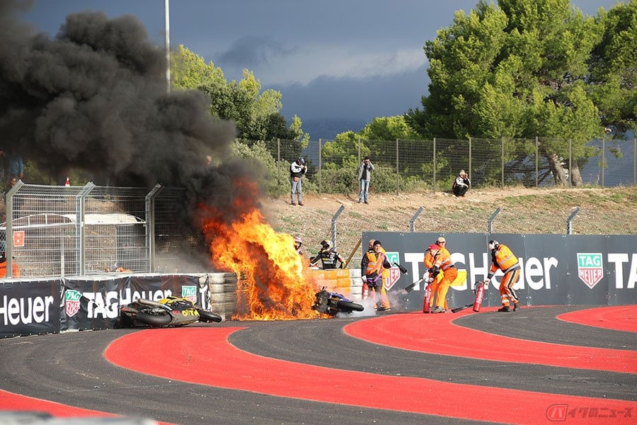 レース中にマシンが炎上 どう処理するの レースオフィシャルの仕事に密着 バイクのニュース