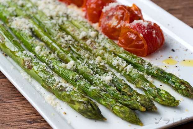 手軽にお洒落副菜アスパラガスとプチトマトのグリルのレシピ ソラレピ