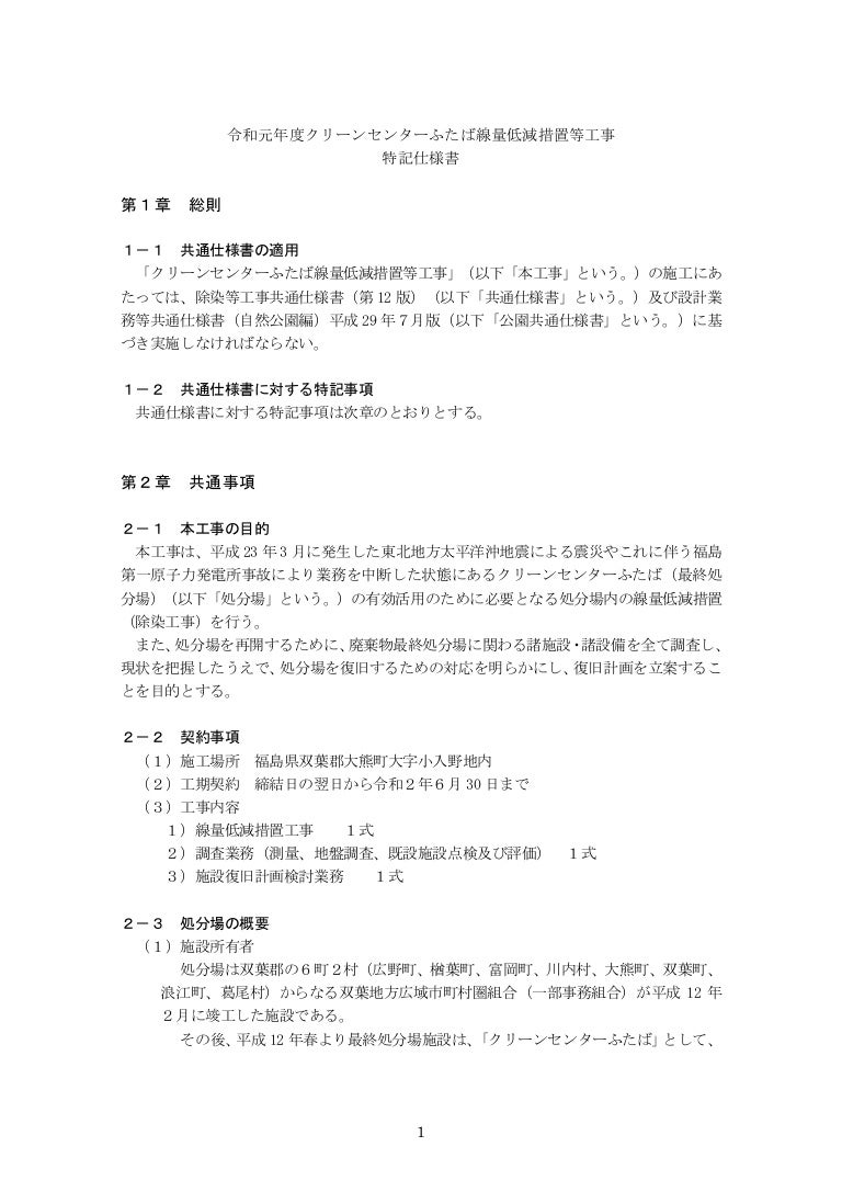 令和元年度クリーンセンターふたば線量低減措置等工事