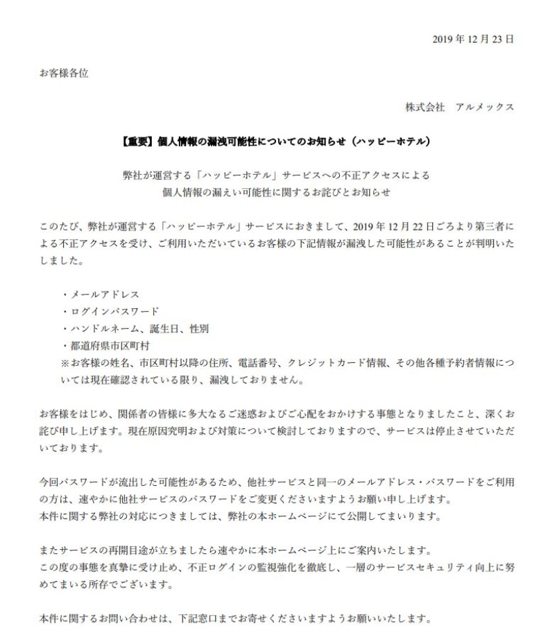 重要なお知らせ サーバーへの不正アクセスによる 当社外国語予約サイトにおける 個人情報の流出に関するお詫びと今後の対応について ニュースリリース 藤田観光株式会社
