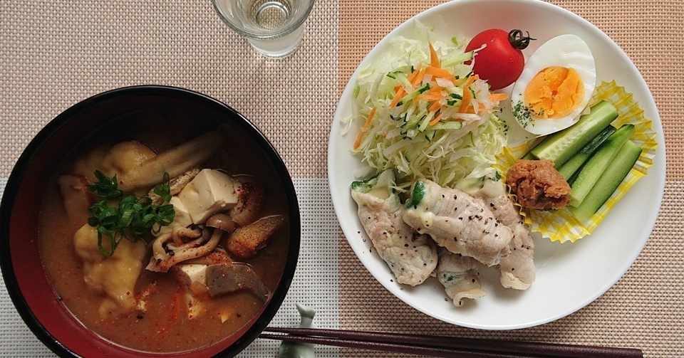 夕ご飯はピーマンチーズイン肉巻き 千切りキャベツサラダ もろきゅう けんちんスイトン味噌汁 りんご酢 ๑ ๑ モグモグ ウズ Note