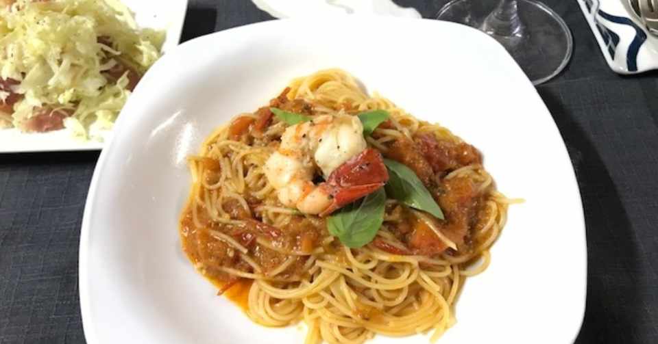 落合シェフ直伝 エビのトマトクリームパスタ