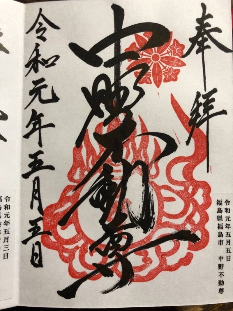 御朱印 中野不動尊 福島県福島市 御朱印と霊場巡り