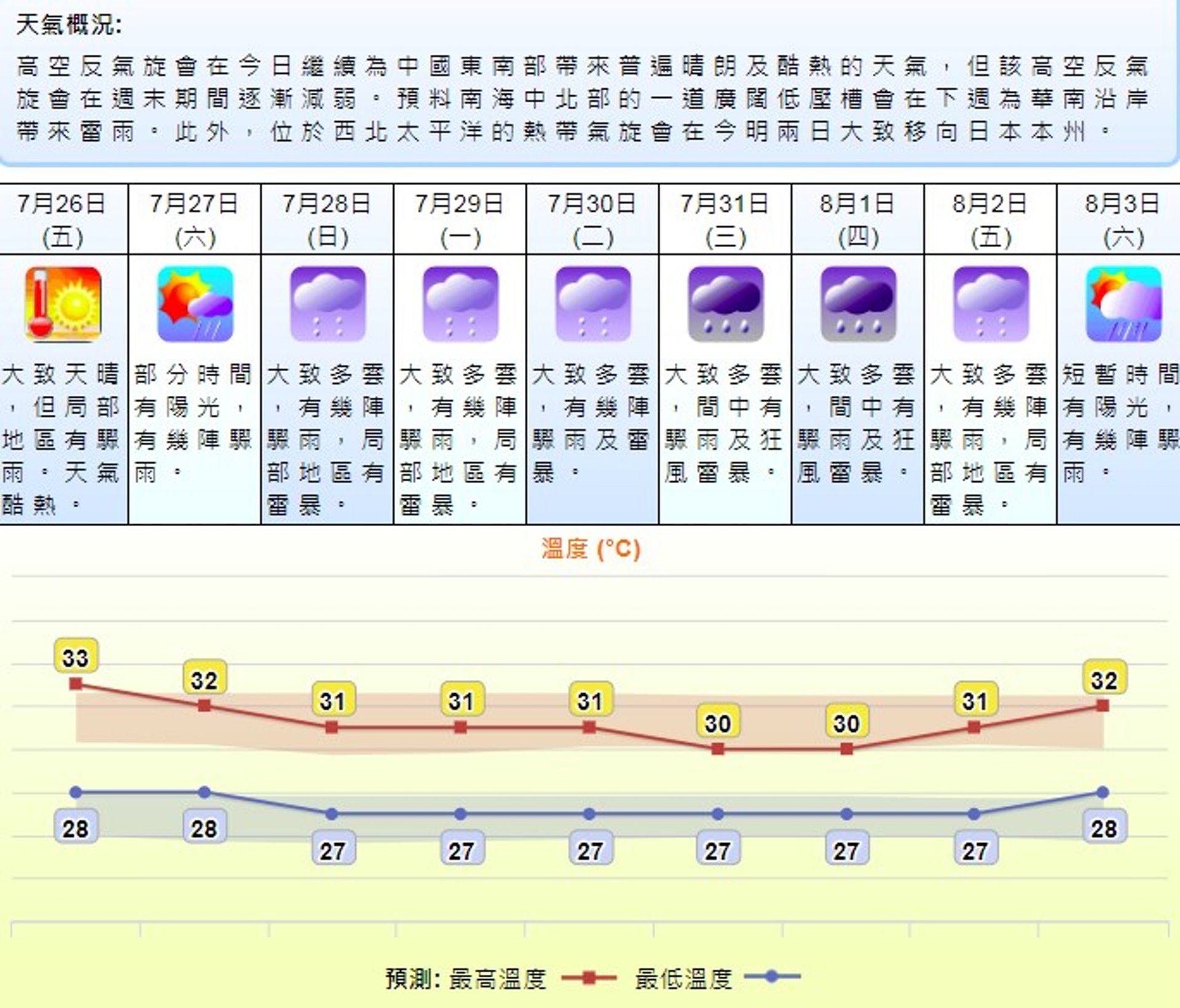 天氣 天文台預測周末天晴酷熱下周驟雨增多 16 30 0723 港聞 即時新聞 明報新聞網