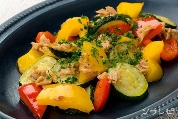 手軽にビタミンcがとれる ズッキーニとパプリカのツナ炒めのレシピ ソラレピ