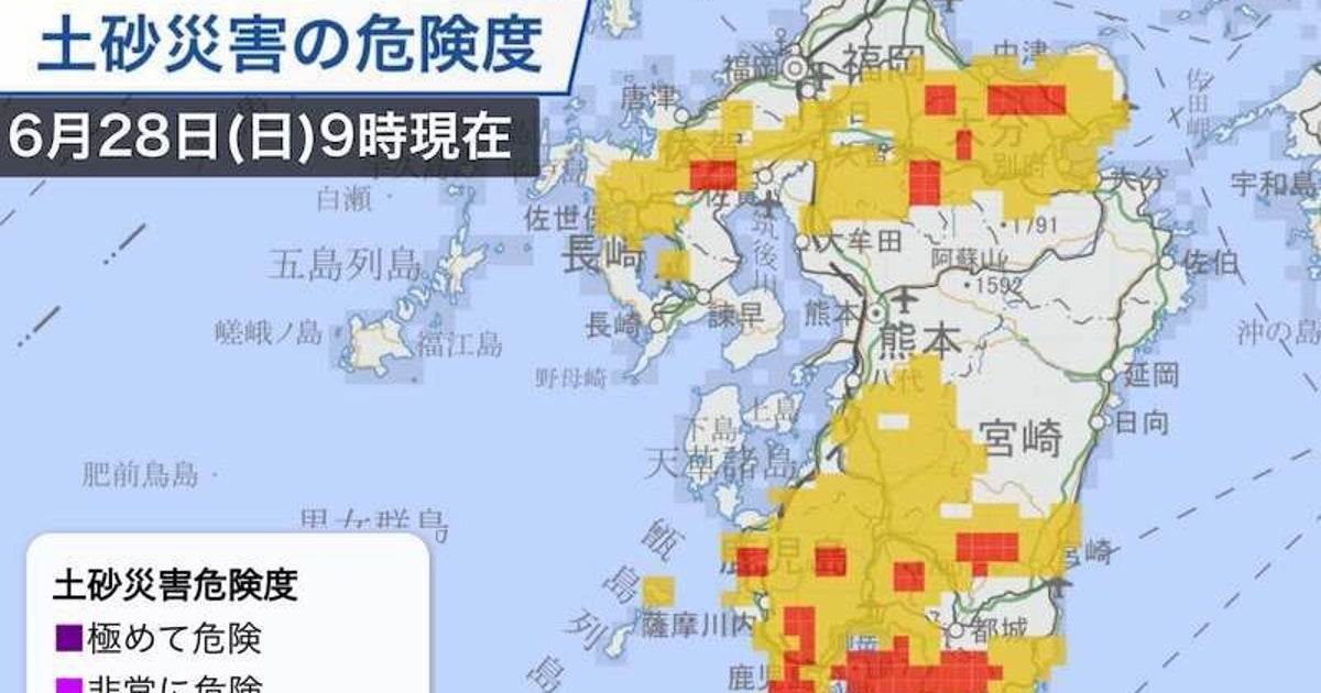 九州南部 1時間50ミリ以上の非常に激しい雨を観測 19年6月28日 Biglobeニュース